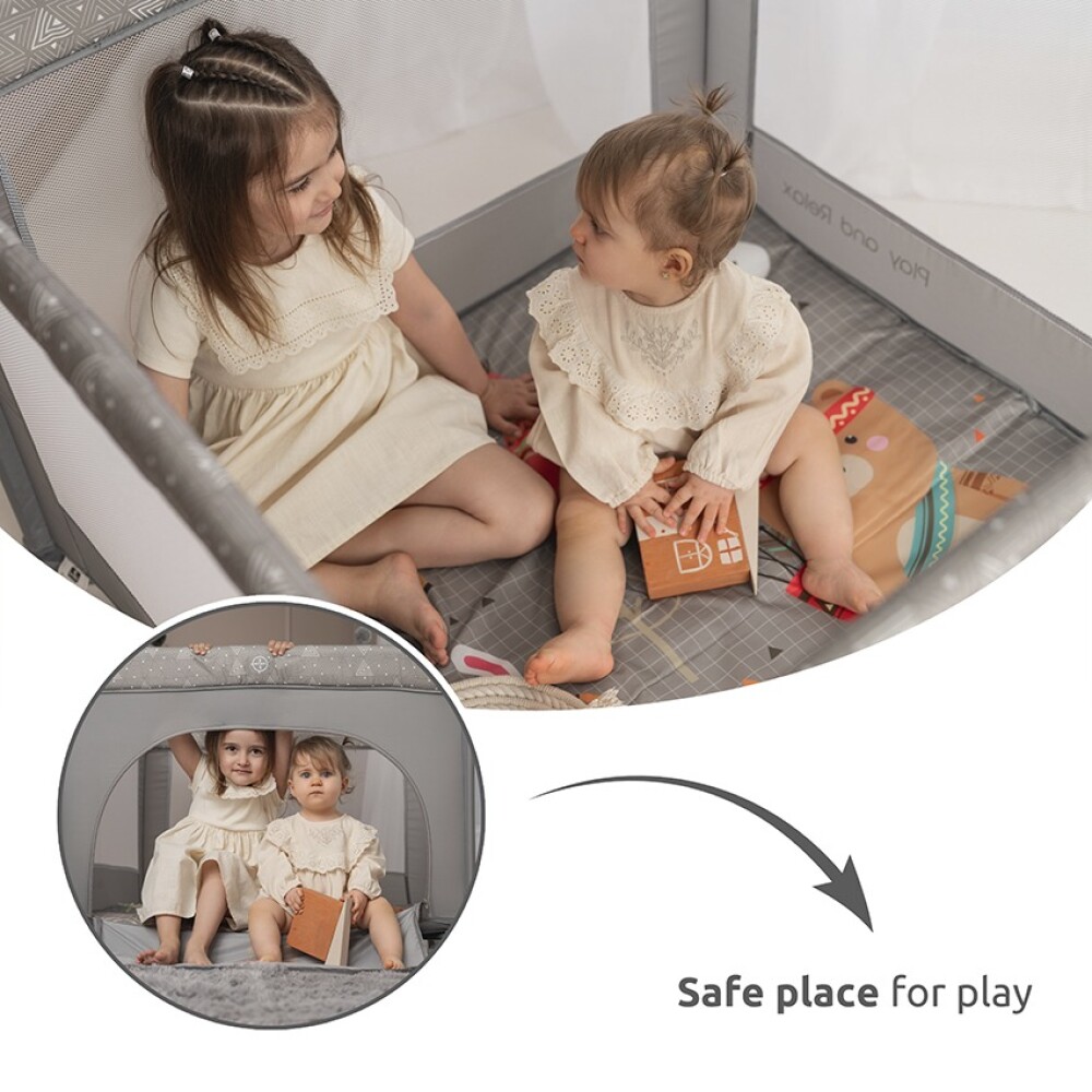 Descubre el parque de juegos plegable Play and Relax, el corral bebé seguro que tu hogar necesita. Este innovador espacio de seguridad para bebé ofrece un entorno controlado y cómodo para el juego y el descanso. Su diseño robusto, fácil de montar y desmontar, lo convierte en el parque de juegos portátil ideal para la vida moderna. Garantiza tranquilidad mientras tu pequeño explora su independencia.