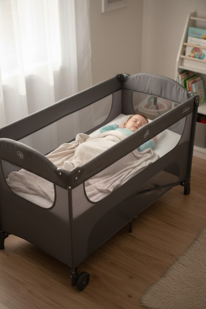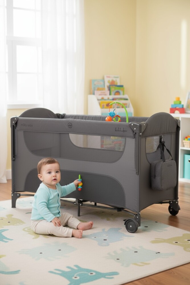 La lujosa cuna Milky Way proporcionará a su hijo paz y comodidad durante el sueño. Compacta, práctica y segura para dormir y jugar, proporcionará a su hijo experiencias inolvidables. Vía Láctea: ¡para un despertar sonriente!