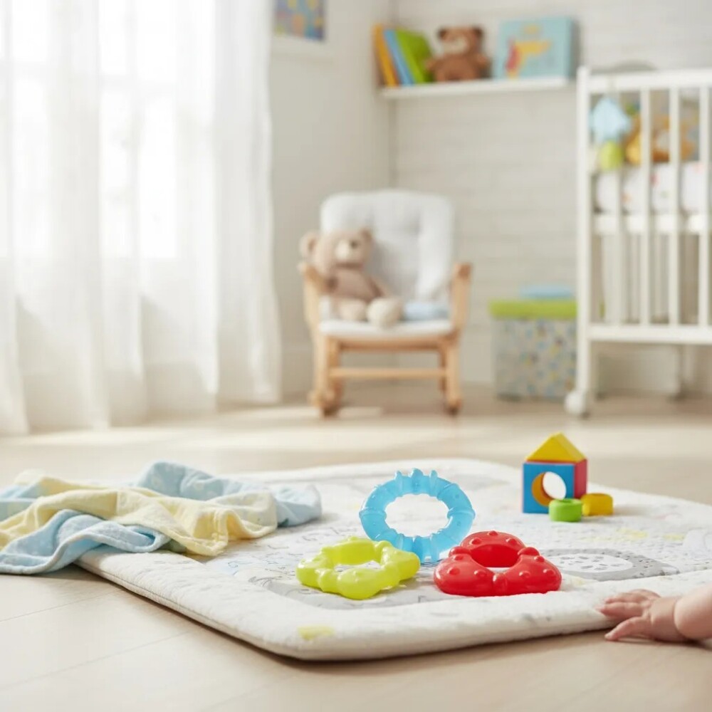 Además de entretener, el mordedor masajea tus encías, reduciendo las molestias de la aparición de los primeros dientes. Es colorido, texturizado, suave y fácil de sostener.
